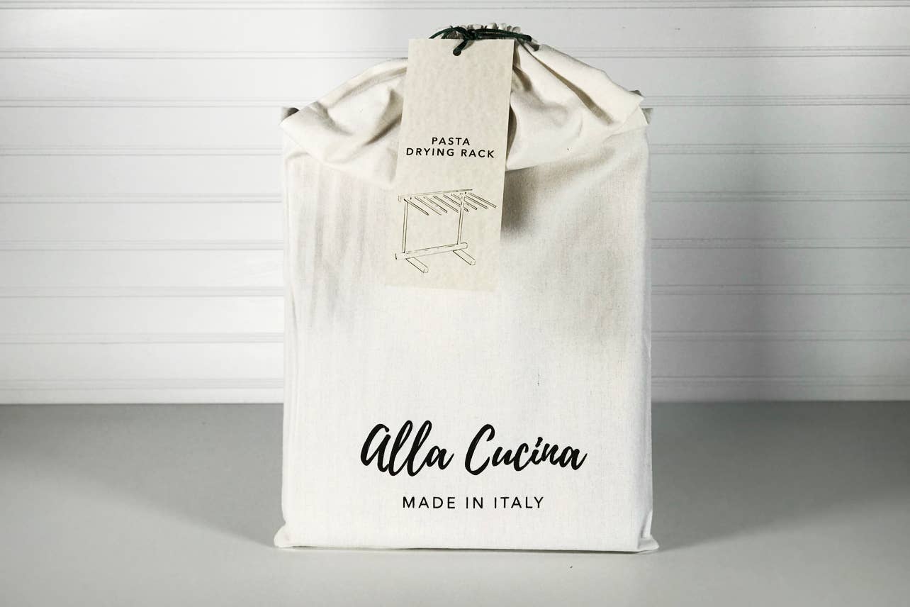 Experience the ultimate solution for drying your freshly crafted noodles effortlessly. Crafted from natural Italian Beechwood, our pasta drying rack features eight arms designed to suspend your delicate pasta strands, ensuring efficient and even drying. When you're done, the rack conveniently folds flat, making storage a breeze.